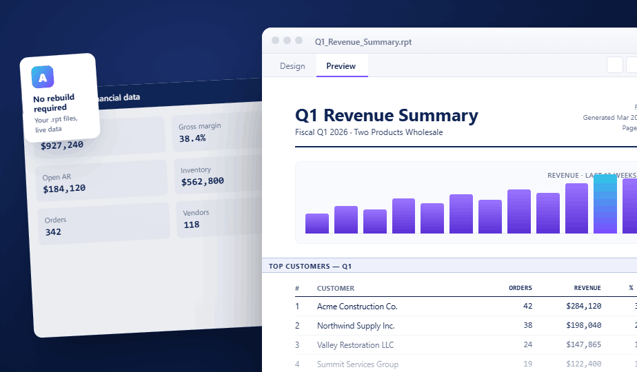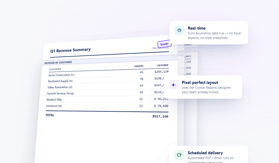 Your Crystal Reports. Your Acumatica Data. No Rebuild Required.